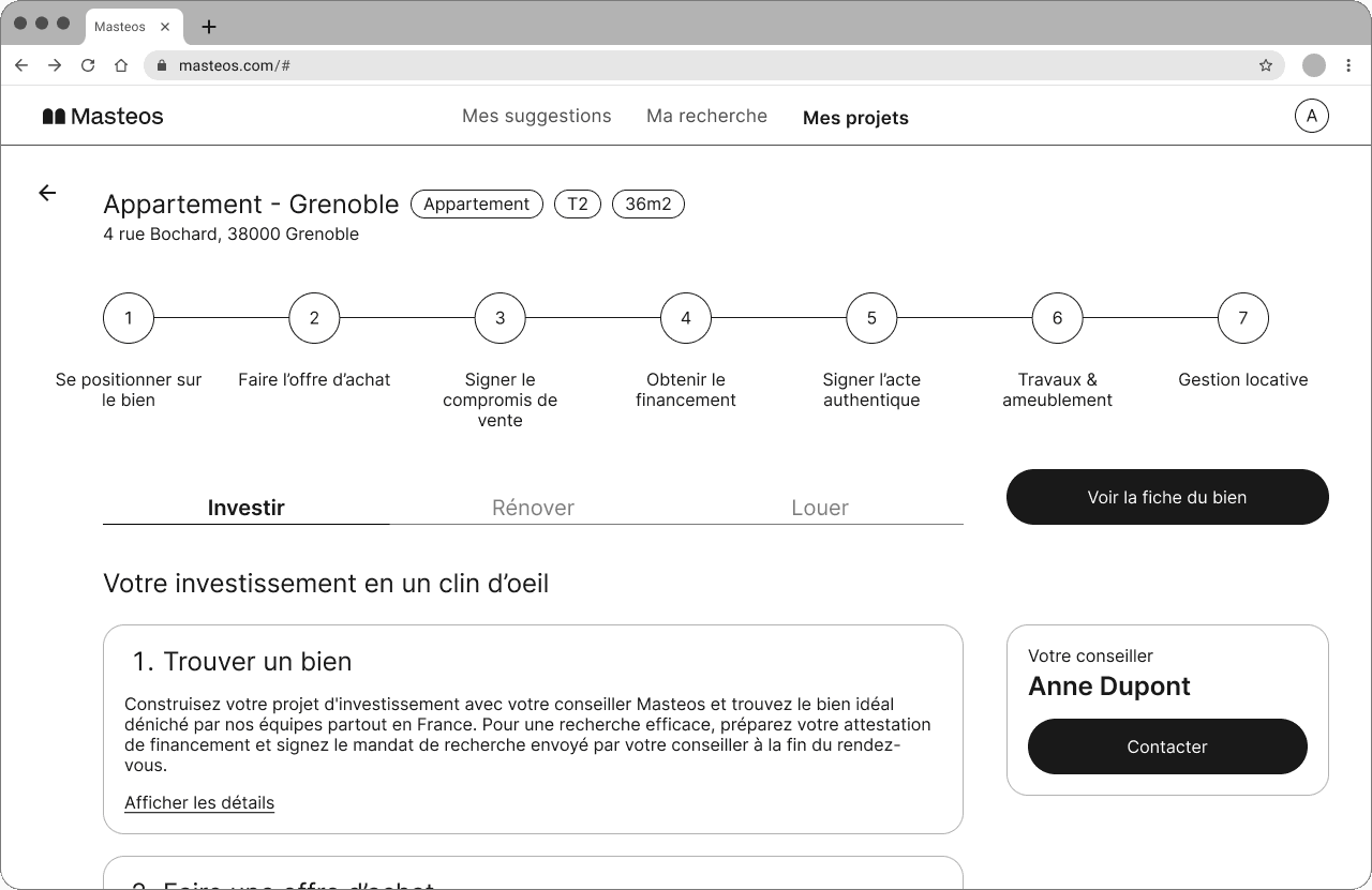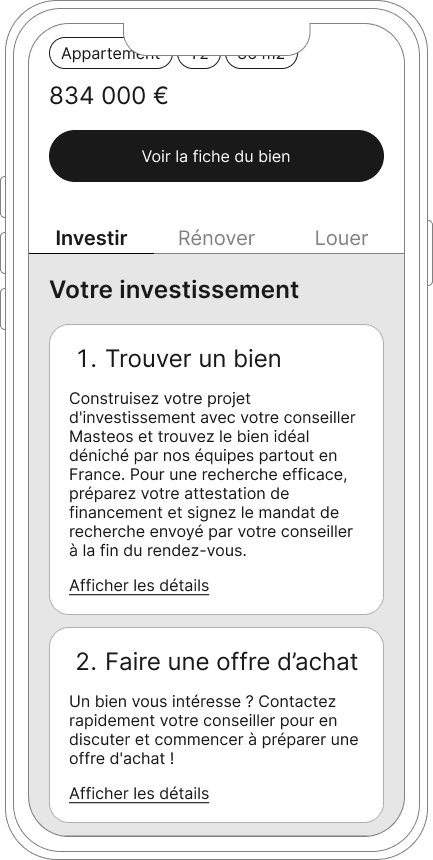 Masteos takes care of all the steps of your real estate investment : Investment, renovation, furnishing and rental management. All in one place. This case study showcases how we worked on the project-tracking MVP with limited ressources and time. The team consisted of 2 product managers, 2 designers and 2 developers. The project had to be shipped in 3 months. Let’s take a look.
